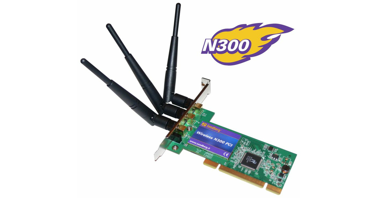 The Sandberg Wireless N300 PCI gives you wireless network access from your desktop computer. The card is based on 802.11ntechnology, which is significantly faster and has a longer range thanearlier wireless network standards. 802.11n is backwards compatible with earlier wireless network standards such as 802.11g and802.11b, so you can also easily use older wireless equipment with your new N300 PCI. The card allows you to connect to wireless networks wherever you have access to them – removing the needfor cables.